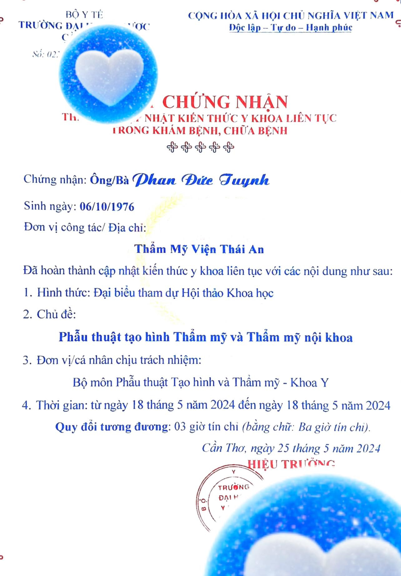 Chứng chỉ đào tạo liên tục tạo hình thẩm mỹ