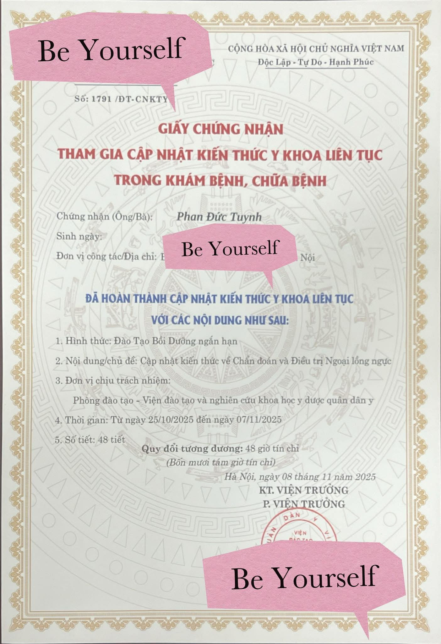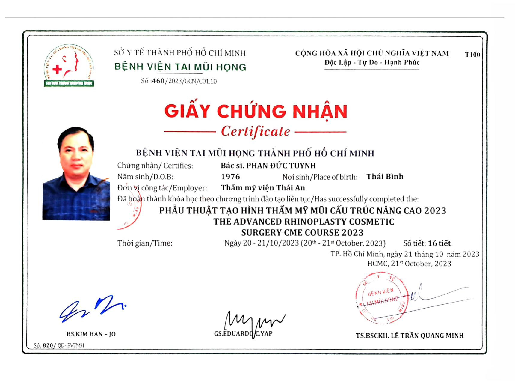 Chứng chỉ đào tạo liên tục tạo hình thẩm mỹ